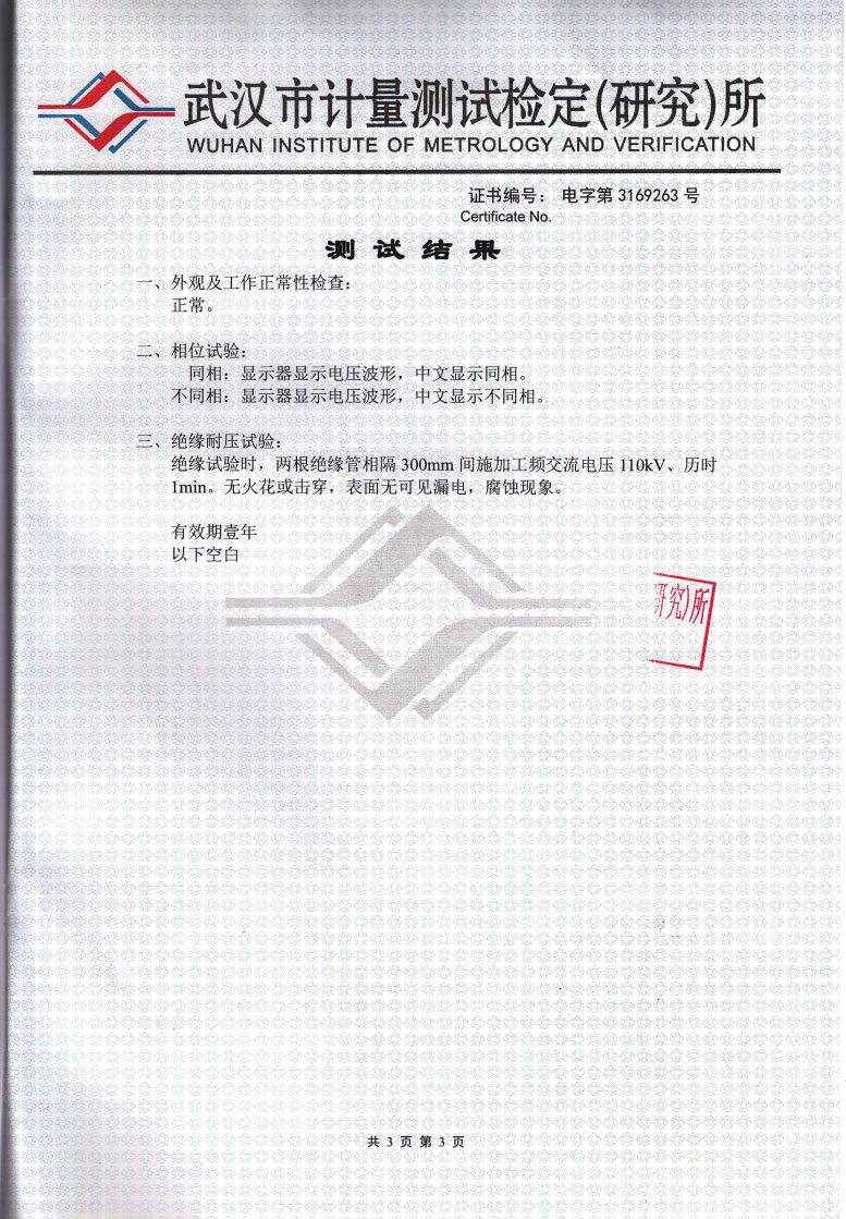 | 適合安規(guī) | GB13398-92、GB311.1-311.6-8、3DL408-91標(biāo)準(zhǔn)和國(guó)家新頒布電力行業(yè)標(biāo)準(zhǔn)《帶電作業(yè)用1kV~35kV便攜式核相器通用技術(shù)條件DL/T971-2005》要求 |