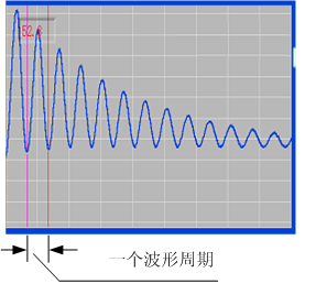 下圖就是對某一條故障電纜進(jìn)行沖閃測試得到的波形,沖閃波形上沒有絕對的電纜始端,從波形的宏觀周期上面找到一個完整的周期,測量一個周期的距離就是電纜的故障長度D。