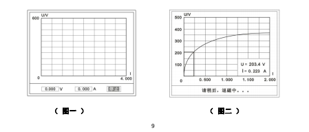 首先,在主菜單界面,旋轉(zhuǎn)鼠標將光標移動到【測試】選項上,按下旋轉(zhuǎn)鼠標選擇【伏安】即可進入伏安特性試驗設(shè)置界面。我們?nèi)〕鰧?dǎo)線包中的(紅、黑)二次線,一頭插在 CT 的二次側(cè),另一頭插在儀器的伏安特性輸出口上便可。然后我們設(shè)定好最大輸出電流和電壓后單擊【自動試驗】選擇【確定】試驗開始。此時裝置將自動按照設(shè)定值進行升壓升流,并記錄其數(shù)值(圖一)。當達到設(shè)定值后試驗結(jié)束,并進行簡單的退磁,當退磁結(jié)束后便進入試驗結(jié)果界面(圖二)。
