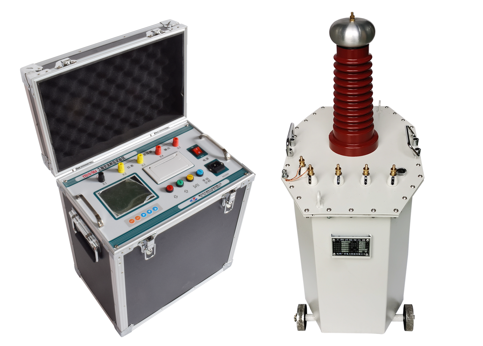 工頻交流耐壓試驗(yàn)儀由油浸式試驗(yàn)變壓器與控制箱(臺(tái))組成,其中控制箱(臺(tái))為一體化裝置,集成調(diào)壓器、測(cè)量單元、控制單元及保護(hù)單元等核心組件。