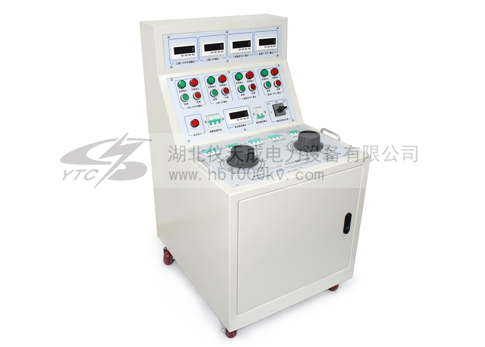 1、三相AC100V輸出(固定值) 一組 2、三相AC 0 - 50A輸出(〈10V,可調(diào)值) 一組 3、交流操作電壓輸出 AC 0 – 420V,220V時,電流小于10A 一組 4、直流操作電壓輸出24V.36Ⅴ.48Ⅴ.110Ⅴ.220Ⅴ 5、單相AC220V輸出(固定值,插座形式) 二組 6、三相AC380V輸出(固定值,接線柱) 二組 |