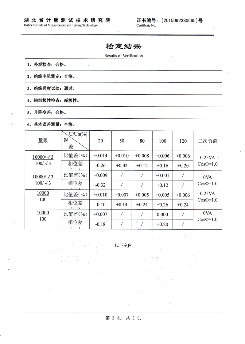 0.05級(jí) 即在額定負(fù)荷的情況下: 當(dāng)電壓為80%Un至120% Un的范圍內(nèi), 比差不大于0.05%,角差不大于2', 當(dāng)電壓為50% Un 時(shí),比差不大 于0.075%,角差不大于3', 當(dāng)電壓為20% Un時(shí),比差不大于0.1%, 角差不大于6'(實(shí)際誤差不大于誤差限值的60-70%)。 |