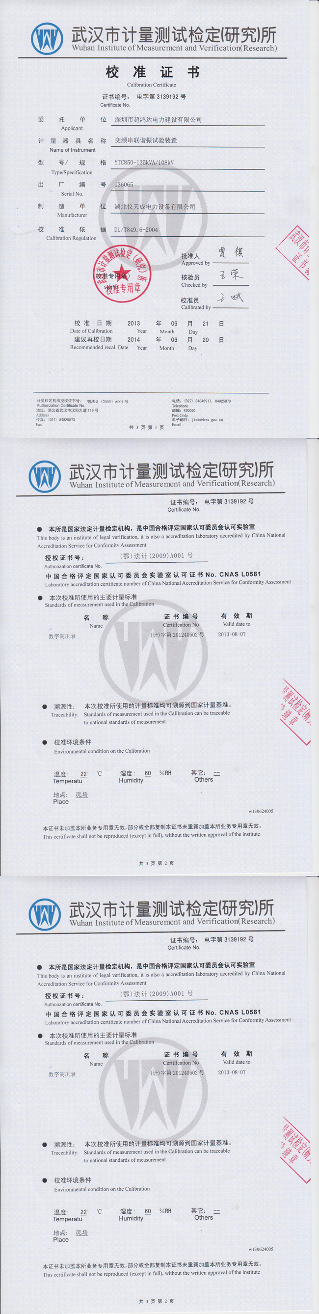 轉(zhuǎn)載:"YTC850系列變頻串聯(lián)諧振試驗(yàn)裝置資質(zhì)證書" 請(qǐng)注明來源于儀天成電力。 更多技術(shù)問題請(qǐng)致電儀天成電力客戶服務(wù):027-87876585,技術(shù)部專線:027-87876585,在線客服:719388481